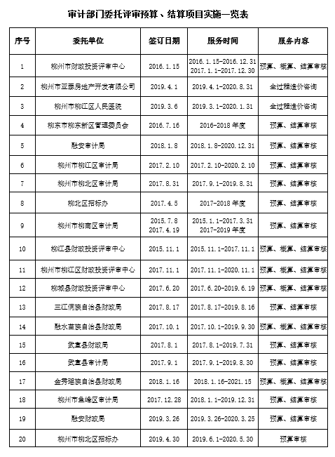 审计部门委托评审预算、结算项目实施一览表